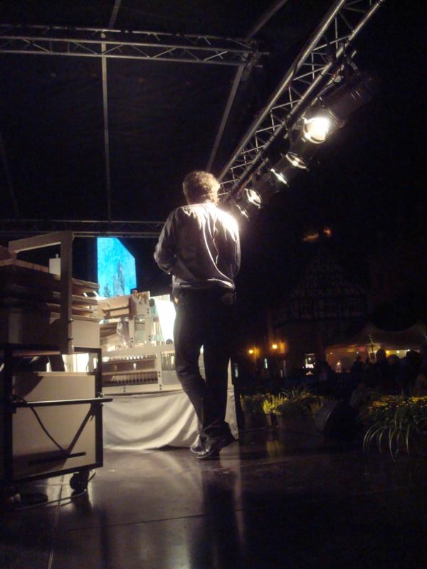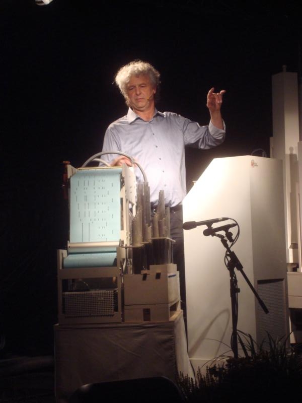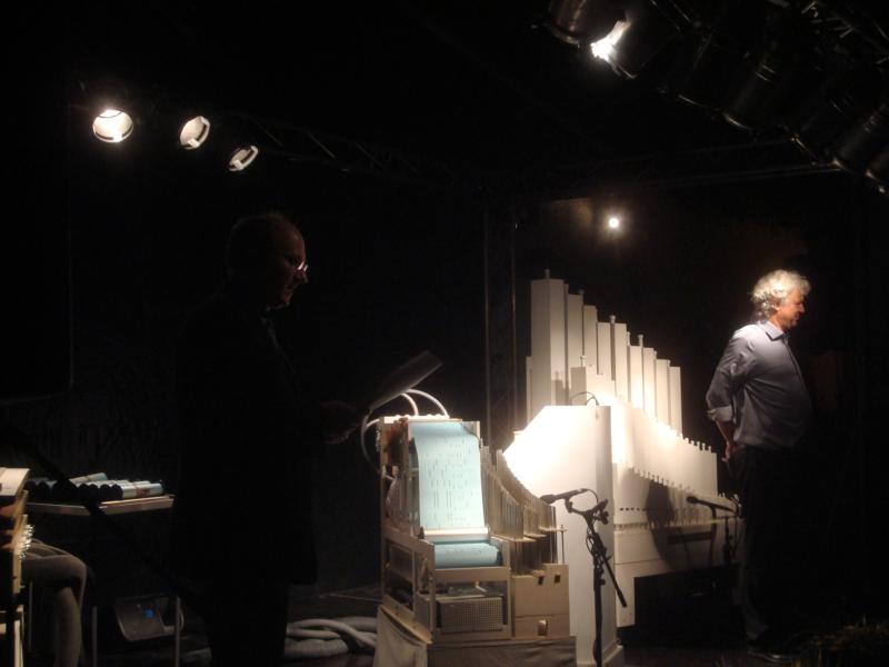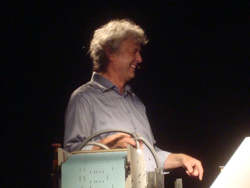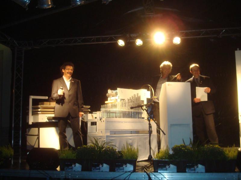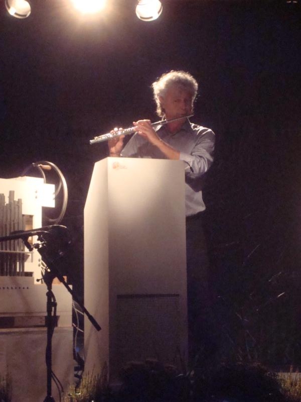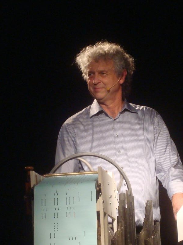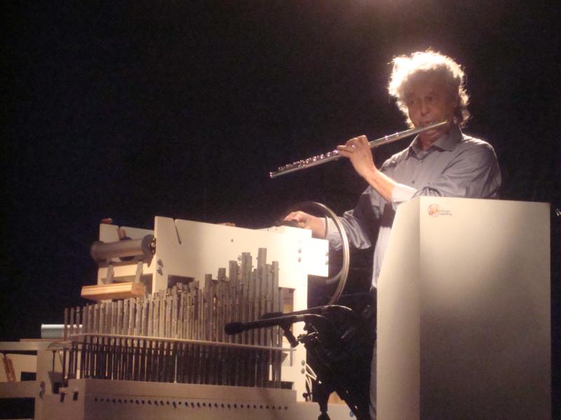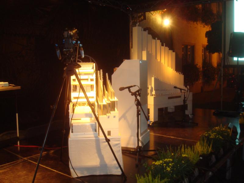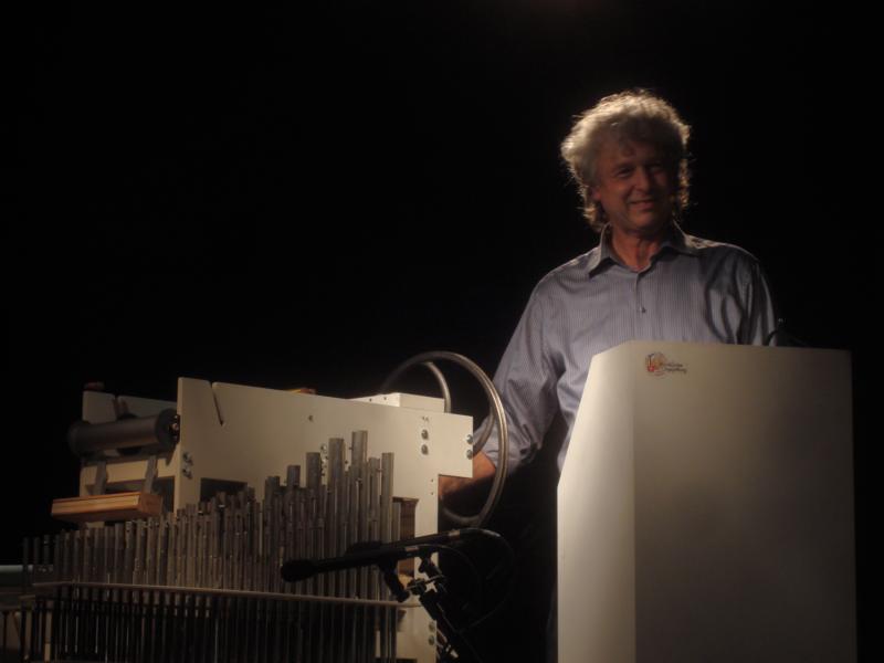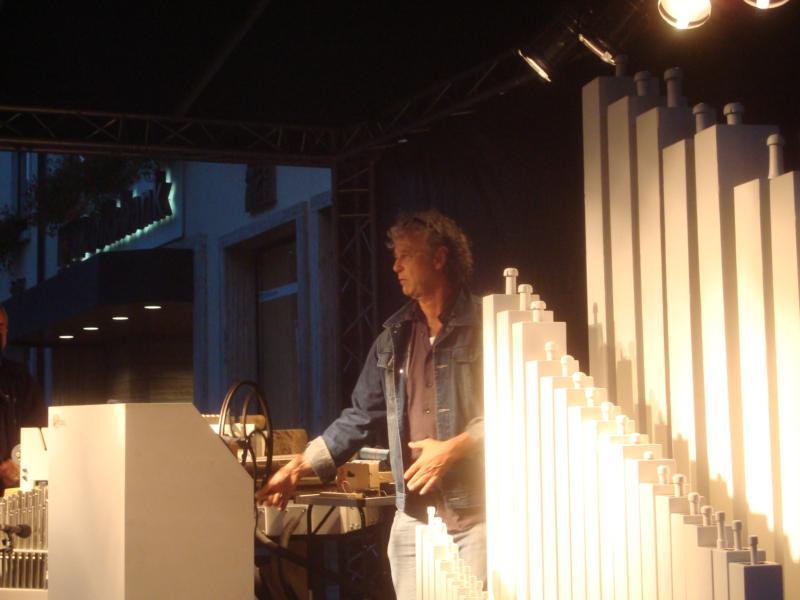 Adrian Oswalt spielt zur Eröffnung Querflöte und Orgel gleichzeitig. Leitete über in Mozarts »Fantasie f-moll« und Eigenkompositionen, so z. B. die »Erdbeersymphonie« und seinen Variationen des »Badner-Lieds«. An diesem Abend präsentierte er zudem seine »Europa-Hymne«, die er eigens zur diesjährigen Kulturpreisverleihung der Europäischen Kulturstiftung »Pro Europa« komponiert hatte, sowie den fast schon legendären »Oswalt-Rave« (gescratcht, nicht gedreht). Bei der Zugabe schließlich klapperte es rhythmisch aus den Reihen, das Publikum spielte auf Waldkircher »Klepperle« – dem ortstypischen Fasnetsinstrument – zu den Orgelklängen. Diese heimische Einlage rundete das Oswalt-Orgel-Konzert gelungen ab.