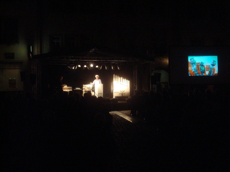 Am 20.10.2012, um 20 Uhr, fand in Waldkirch das letzte Open-Air-Konzert der Saison in Deutschland statt. Adrian Oswalt spielte zum Abschluss der Waldkircher Kulturwochen 2012 auf seiner XXXL-Handdrehorgel. Mit neuen Kompositionen begeisterte er das Publikum. Zu der Musik wurden Videomontagen eingespielt, die sich - ebenso wie die Kompositionen - dem Thema »Heimat« widmeten. Es gab an diesem Abend wieder einige Uraufführungen auf der Oswalt-Orgel. Der 1. Vorsitzende der Waldkircher Orgelstiftung, Bernhard Wintermantel, moderierte den Abend.